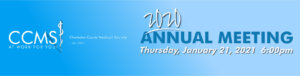 The CCMS Annual Meeting will be held Thursday, January 21, 2021, at 6:00 p.m. in a new virtual format.